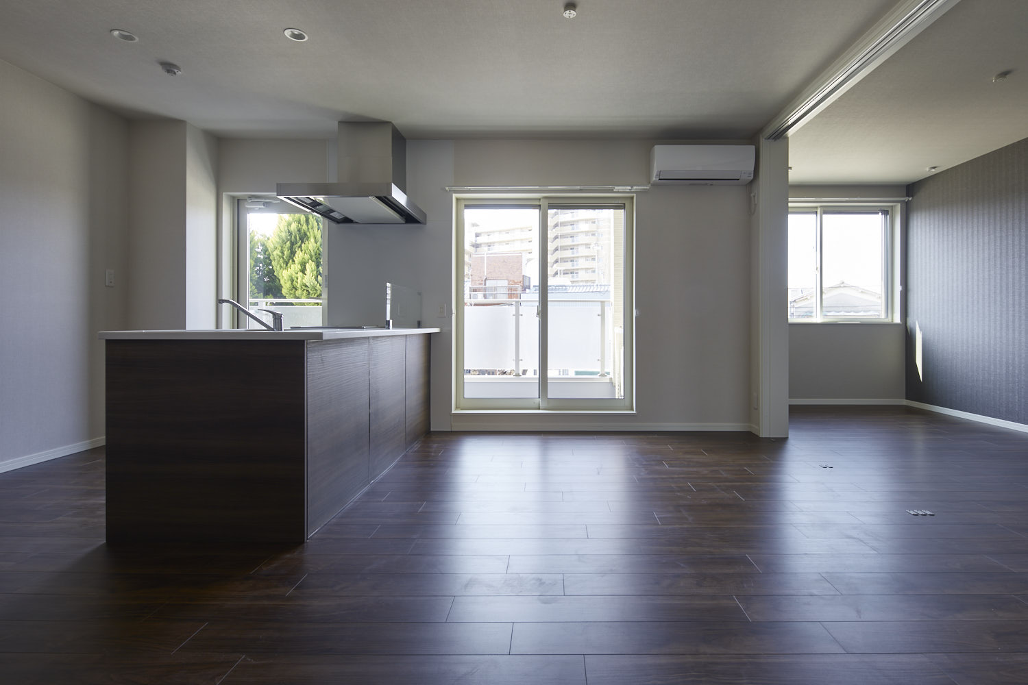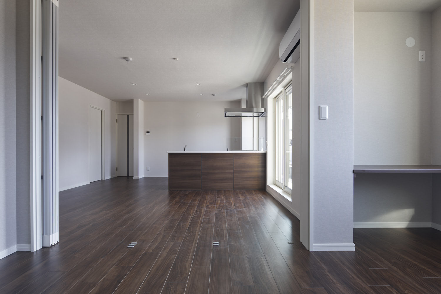 人気の対面キッチン横にダイニングテーブルを設置可能